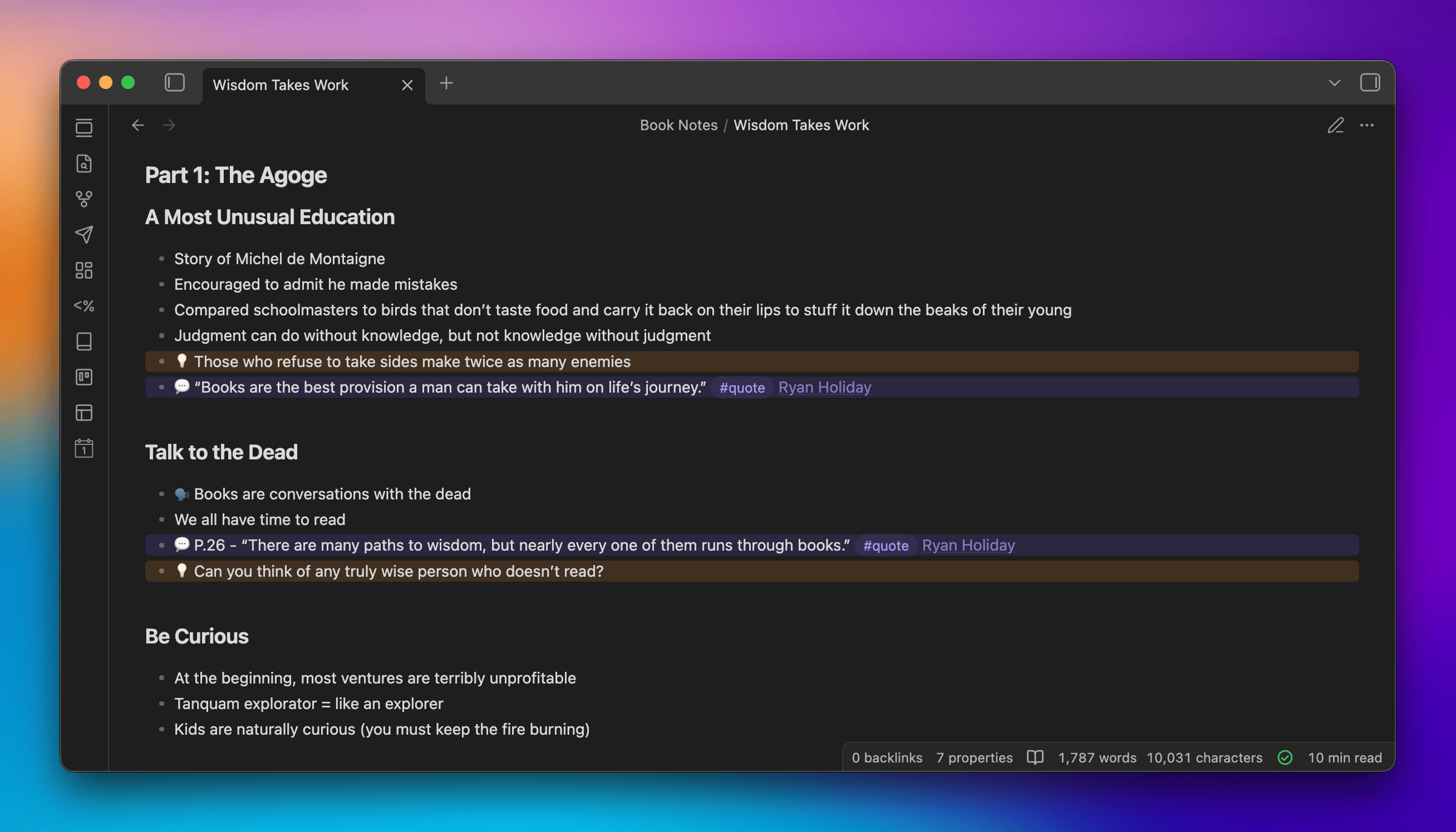 A weekly newsletter where I help people apply values-based productivity principles and systems for personal growth, primarily using Obsidian. Subscribe if you want to make more of your notes and ideas.