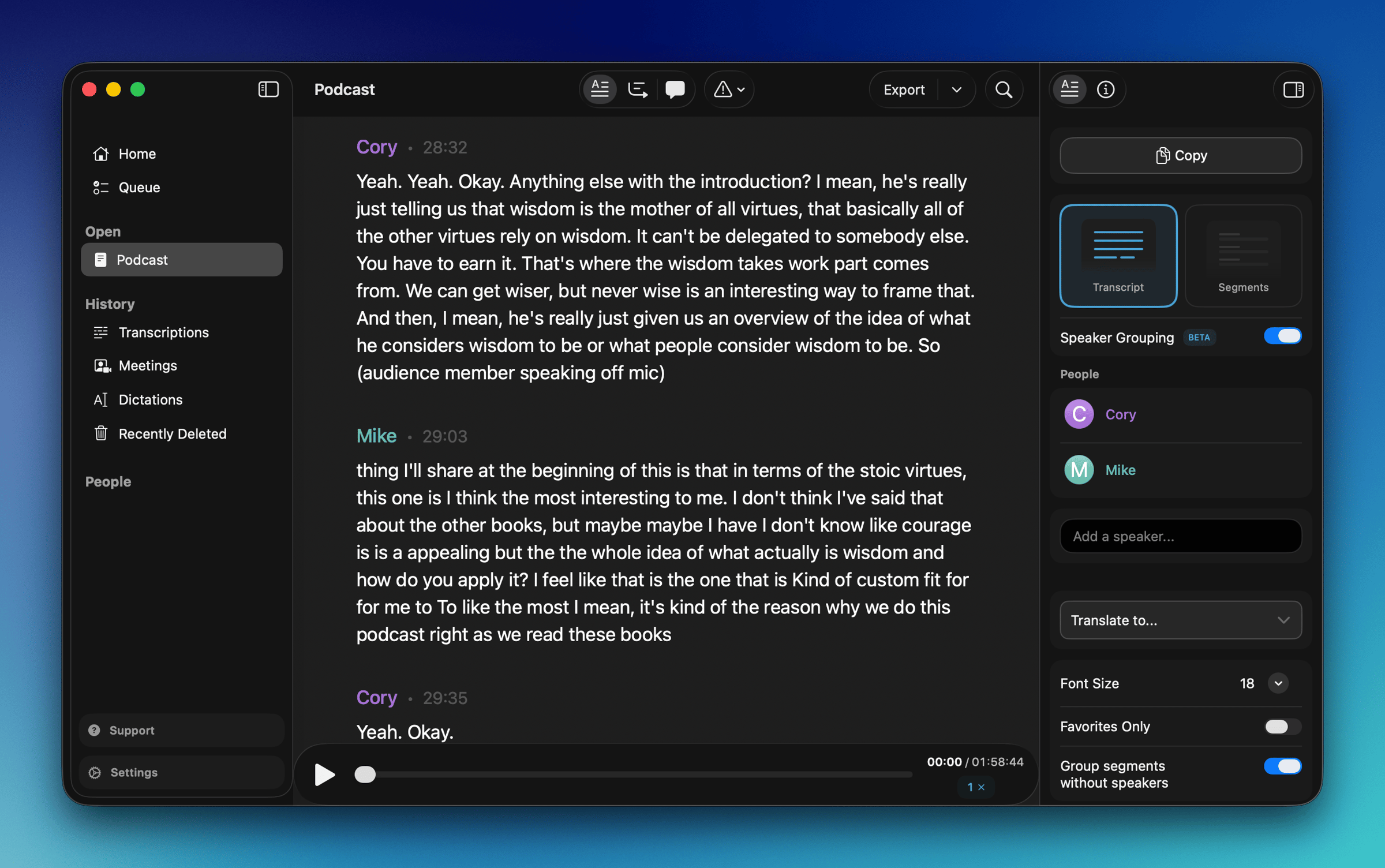 I also wanted to build in mentions of the Bookworm episodes, so the skill searches bookworm.āfm, finds the episode number, and works it into the script automatically. Step 3: Bring in What Iāve Already Said About the BookMy book notes are great, but theyāre just highlights and annotations. A lot of my best thinking about a book happens during the 90-minute conversations we have on Bookworm. So I wanted Claude to have access to that too. I use MacWhisper to transcribe both sides of the podcast audio from the Dropbox folder where we keep everything. This only takes a couple of minutes, and it gives me a clean transcript I can attach when I run the skill. With all of this in place, I can say something like āLetās do Wisdom Takes Work by Ryan Holiday,ā attach the transcript, and Claude writes the video script for me. I still go through and edit the whole thing, but Claude actually does a pretty great job as a script writer. The entire process from uploading the transcript to finishing the edit only takes about 45 minutes. But I still need to record (and edit) the video, so thatās what I tackled next. Step 4: Dial in the Video StyleThe script is only half the equation. I still need to get in front of the camera. My regular Obsidian videos have a very specific style thatās been developed by publishing over 100 videos. But these book summary videos donāt exactly fit that format. So I decided to give my editor a clean slate and the raw material for figuring out the visual style. I recorded: