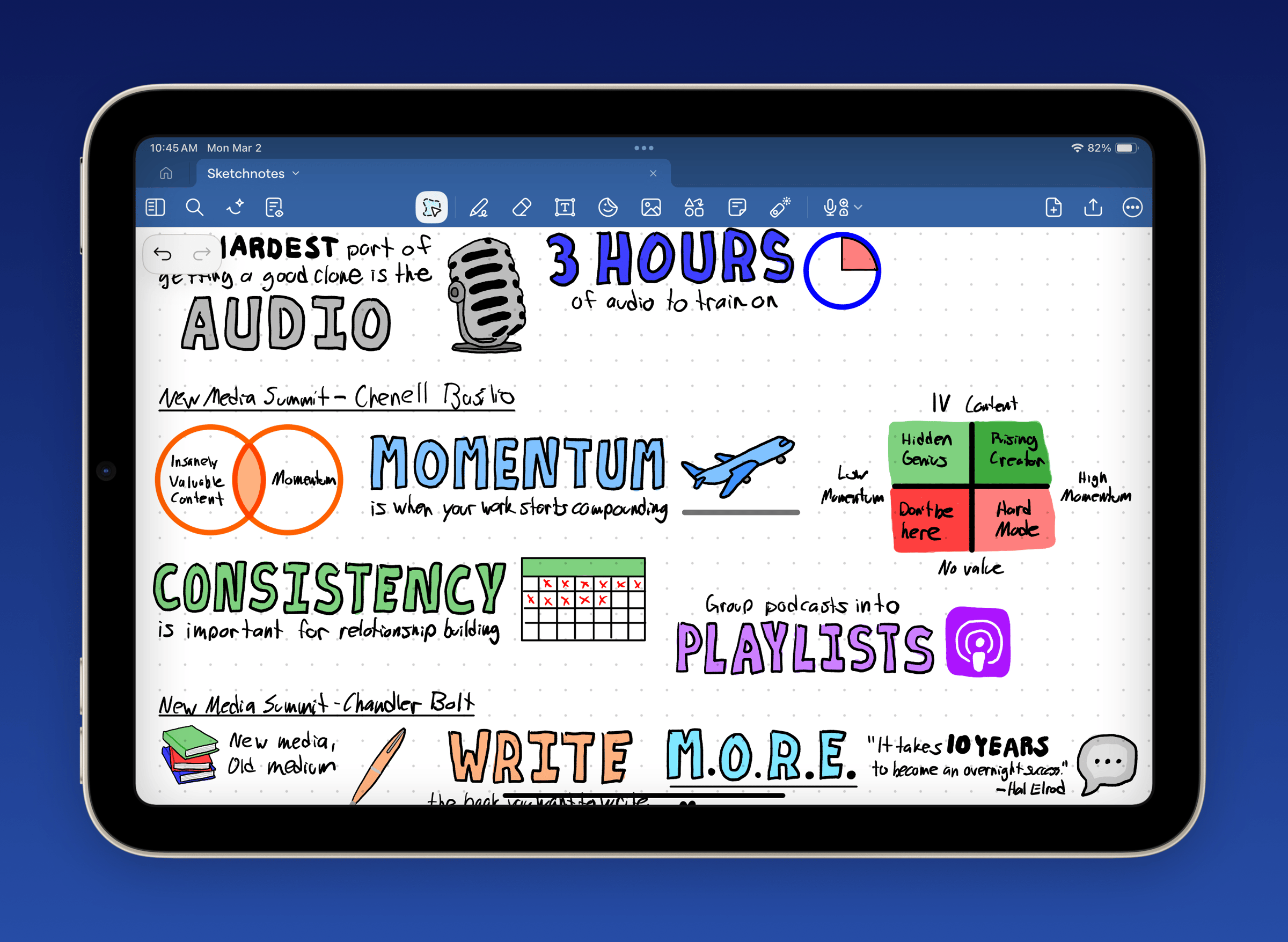 Prefer to read (or listen to) this newsletter in your browser? Click here. 💡 The Big Idea: Information Is a Commodity. Transformation Is the New Product. I just got back from the New Media Summit, and I came home with a lot to process (and a lot of sketchnotes 😉). Some of my sketchnotes from the New Media Summit. I went to learn about the creator economy, but I realized that the world of personal knowledge management (PKM) is dealing with a lot of the same issues: AI is commoditizing...