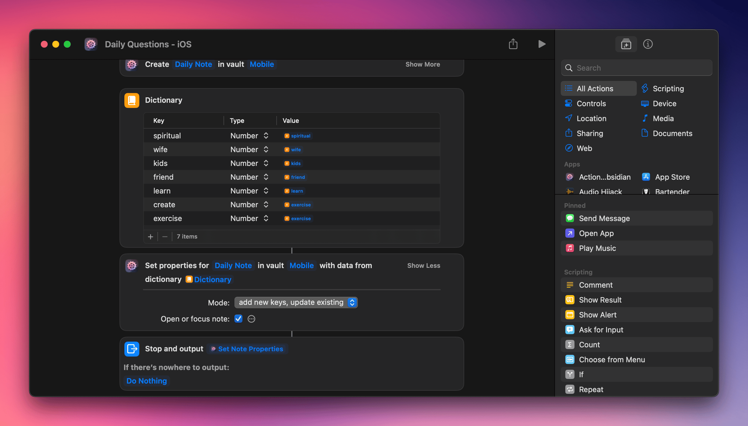 The difference is that it’s no longer a text block that gets inserted at a placeholder. For this, I had to first create a dictionary file in the Shortcut with the key value pairs I wanted to set, then set the properties for the current Daily note according to that dictionary: This part is a little bit technical, and I’m actually working on a video for this. But the short version here is that this Set Properties action adds my responses to the properties in the current Daily Note in a way that the workflow at the end of the day is exactly the same. (If you want to play with the Shortcut, here's the link.) The Bottom Line: Claude is great at writing DataviewJS code.I kinda can’t believe what I was able to accomplish here. This is the ideal version of my Daily Questions Dashboard, and has given me fresh inspiration for additional dashboards as well (I’m currently working on an updated habit tracking dashboard). I’m still a little bit nervous about sharing code I didn’t write myself, but I’ve learned quite a bit from the process as Claude does a great job of commenting in the code and explaining the changes it makes with each revision. I’ll be sharing this in the Practical PKM cohort inside The Library first, then I’ll share it publicly once I know it’s 100% bulletproof. But the cool part about this is that you can make it your own simply by changing the property you want to track in the code. A simple find and replace and you can customize these graphs to work with whatever properties you want to track instead. — Mike P.S. It's not too late to join the live Practical PKM cohort kicking off today inside The Library! I'll be sharing the done-for-you version of this with the cohort in week 5 when we cover journaling and reflection. Join now for only $147. |